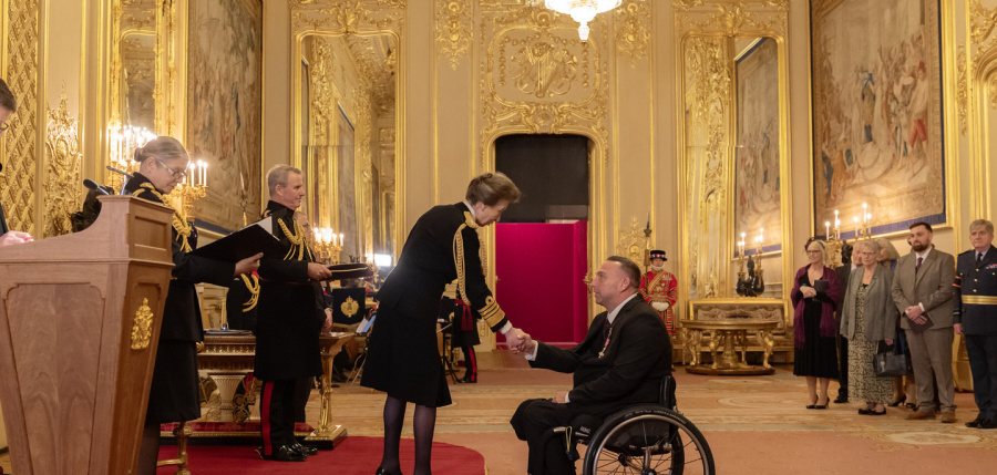 An inspirational wheelchair adventurer from Lancaster has received the MBE from Princess Anne in a special ceremony at Windsor Castle.